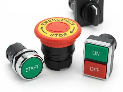 شستی استارت (سبز): معمولاً دارای یک کنتاکت باز (NO) است. با فشار دادن آن، جریان وصل شده و دستگاه روشن میشود.