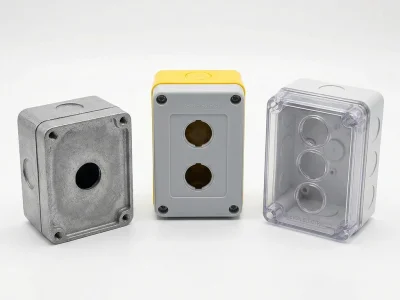 جعبه شاسی (Control Station Box) در واقع همان قاب، کاور یا محفظه پلاستیکی/فلزی است که دکمهها روی درب آن پیچ میشوند و سیمکشیها به شکلی کاملاً ایمن در داخل آن قرار میگیرند. استفاده از جعبه شستی به شما امکان میدهد یک ایستگاه کنترل محلی (Local Control Station) را دقیقاً در کنار اپراتور یا کنار دستگاه نصب کنید تا نیازی نباشد اپراتور برای هر بار خاموش و روشن کردن دستگاه، تا پای تابلو برق اصلی برود.