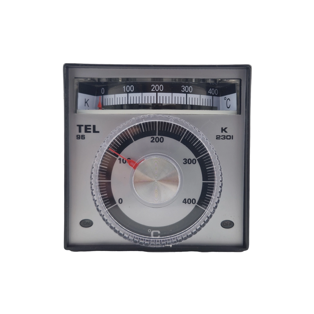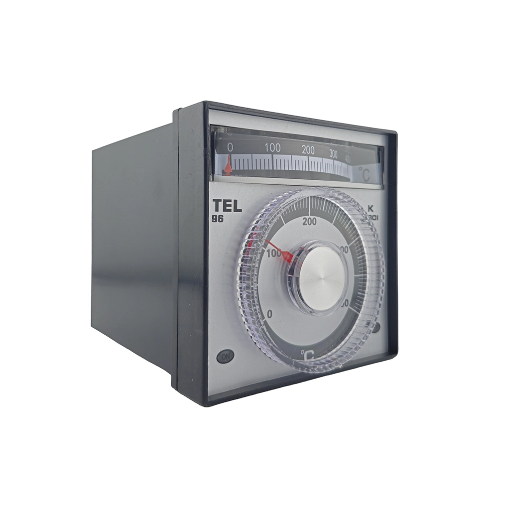 مدل TEL96 دارای ابعاد پنل 96x96 میلیمتر است. این بزرگترین سایز استاندارد در ترموستاتهاست. بزرگ بودن صفحه مدرج باعث میشود "دقت تنظیم" بالاتر برود. در مدلهای کوچک (مثل 48x48)، فاصلهی بین اعداد کم است و تنظیم دقیق سخت میشود، اما در مدل TEL96 فواصل اعداد بازتر بوده و اپراتور کنترل بهتری روی دما دارد.